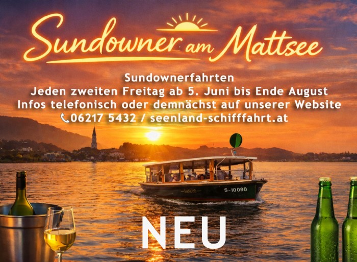 Das rein elektrisch angetriebene Fahrgastschiff "Seenland" zeigt Ihnen die Umgebung von Mattsee! Neben der Linienschifffahrt können Sie das Schiff auch für private Feiern oder als ausgefallene Hochzeitslocation chartern!